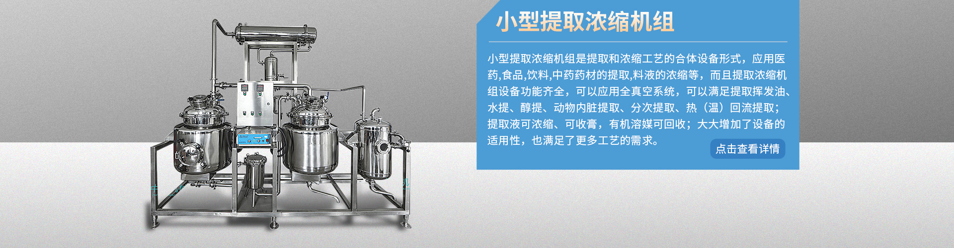 中核企業(yè)長(zhǎng)期全心致力于機(jī)械工程和衛(wèi)生級(jí)流體設(shè)備的研發(fā)生產(chǎn)。經(jīng)過(guò)多年技術(shù)積累和對(duì)外合作,已成功為客戶(hù)提供了各種規(guī)格的中藥提取設(shè)備、濃縮蒸發(fā)成套設(shè)備、甲醇和乙醇回收設(shè)備、配液罐、反應(yīng)釜及各種規(guī)格罐類(lèi)設(shè)備等。憑借先進(jìn)的設(shè)備制造技術(shù)和豐富的產(chǎn)品加工經(jīng)驗(yàn),在吸收先進(jìn)技術(shù)的基礎(chǔ)上,不斷改進(jìn)、完善設(shè)計(jì)和加工工藝。可根據(jù)客戶(hù)的發(fā)展戰(zhàn)略及實(shí)際需要量身定做,為客戶(hù)提供合理、節(jié)能、安全、環(huán)…