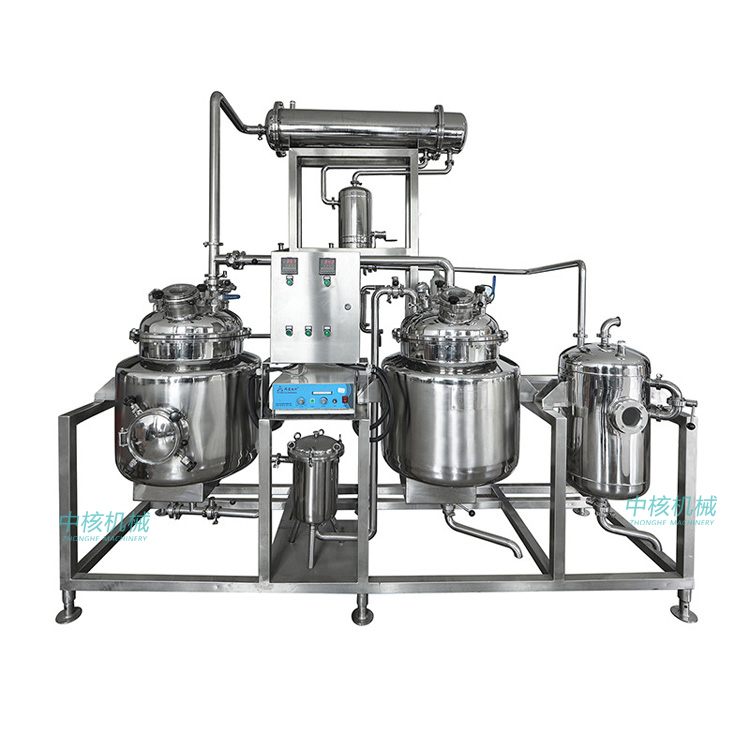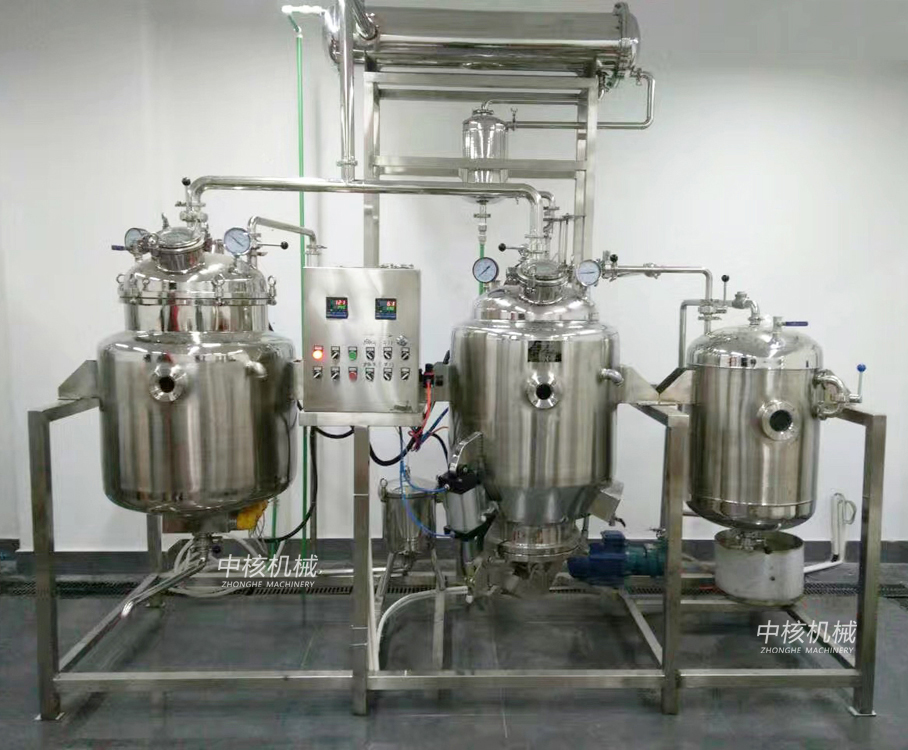 2. 本設(shè)備可采用真空低溫提取,有效減少熱敏性有效成分的喪失。提取罐內(nèi)配有雙級(jí)攪拌,使體積比較大的物料充分與溶劑接觸,加速有效成分的析出。