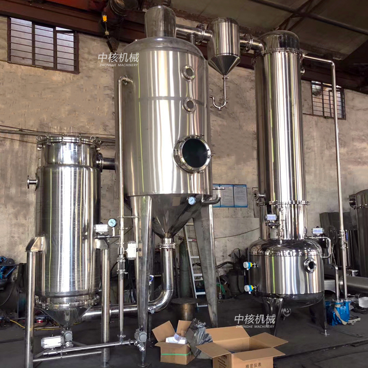 2、濃縮液料:本設備采用外加熱自然型循環(huán)式與真空負壓蒸發(fā)方式,蒸發(fā)速度快,濃縮比重可達1.2;液料在全密封狀態(tài)無泡沫濃縮,本設備濃縮出來的藥液,具有沒有污染,藥味濃的特點,而且清洗方便(打開加熱器的上下蓋即可進行清洗)。本設備操作簡單,占地面積小。加熱器,蒸發(fā)器采用不銹鋼保溫結構,保溫采用聚胺脂發(fā)泡,外表面磨砂亞光處理,符合GMP醫(yī)藥標準。